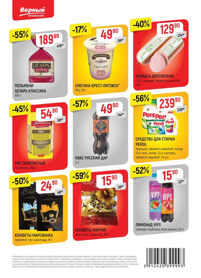 Еженедельная акция с неплохими скидками на товары в сети супермаркетов "Верный" стартует 20 августа 2019 года.