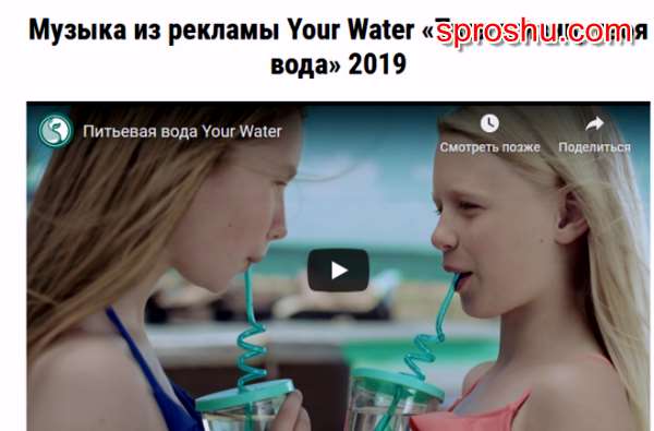 Что за музыка из рекламы Your Water Твоя жизнь, твоя вода 2019?