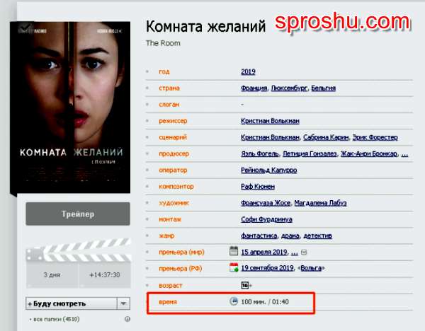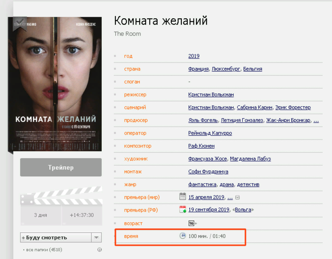 Комната желаний фильм 2019 года, сколько идёт по времени?