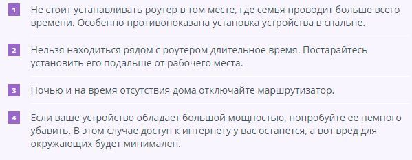Wi-Fi - это что за сигнал такой? Это волны электромагнитные по своей природе, которые и раздает роутер, чтобы можно было бы по беспроводному типу передачи подключиться к интернету в пределах доступности этих волн. Чем опасны электромагнитные волны? Нагревают то, через что проходят, в нашем случае - человеческое тело. Также, они влияют на скорость процессов обмена, давление в сосудах и на ЦНС. Вреден ли wi-fi роутер? Скорее нет, поскольку мощность его недостаточна для сколь-нибудь существенного вреда. Но, приборов то ведь много - мобильники еще есть, микроволновки, а кумулятивный принцип еще никто не отменял. Да и квартиры небольшие и потому зачастую около роутера могут даже спать. Некоторые люди могут ощутить: