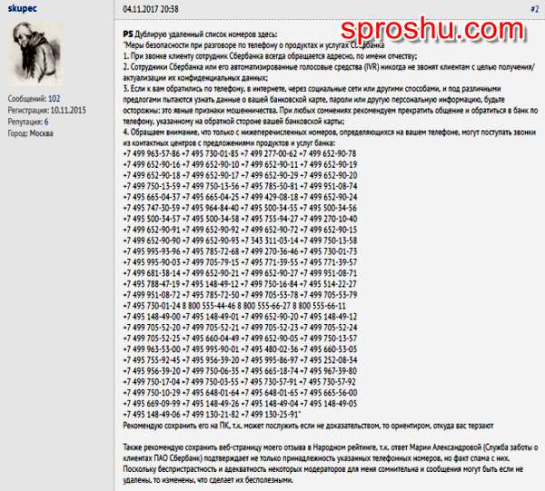Отзывов о звонках с этого номера множество и многие считают, что это звонок мошенников, однако следует отметить, что данный телефонный номер официально подтверждён Сбербанком, как номер, с которого могут поступать информационные или опросные звонки. Только это не сам Сбербанк, а одни их их партнёров.