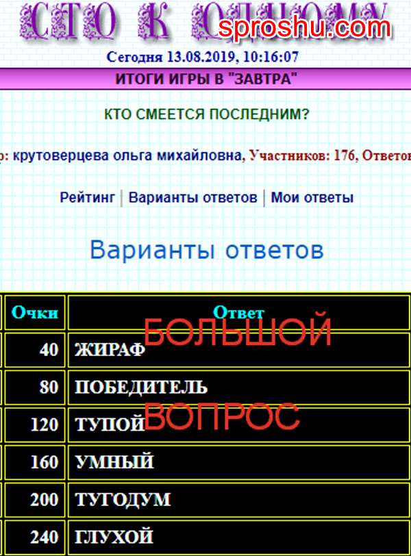 Тройку ответов замыкает Тупой. Ответ приносит 120 очков;