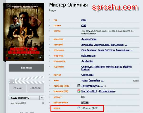 Мистер Олимпия фильм 2018 года, сколько идёт по времени?