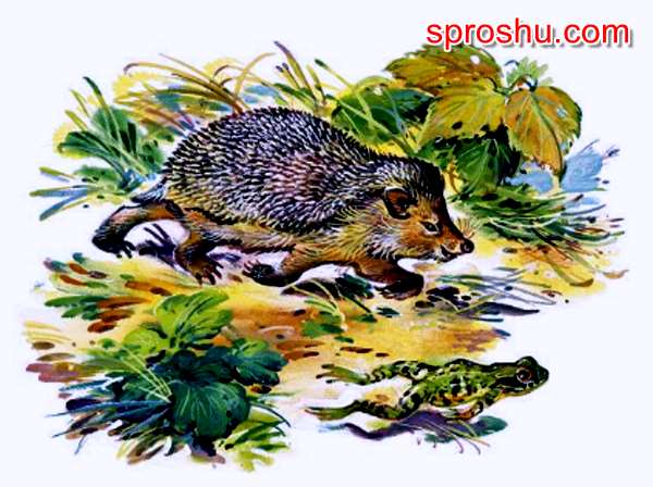 Встретил Ежик на дорожке Улитку и предложил ей пробежаться наперегонки, а кто победит, то съест побежденного. Он с легкостью перегнал соперницу и слопал её. А далее он встретил Лягушку, которой предложил такое же соревнование. Обогнать пучеглазую Ежу было легко, после чего он съел проигравшую.