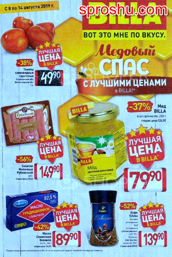 Акции и скидки в Билла с 8 августа 2019 года, какие? Что есть в каталоге?