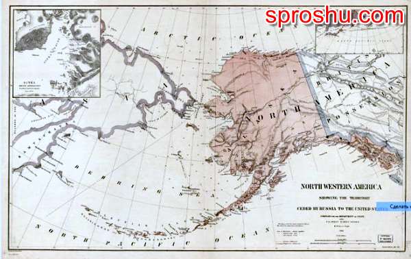 Карта территорий Северо-Западной Америки, переданных Российской Империей Северо-Американским Соединённым Штатам в 1867 году