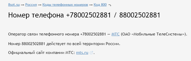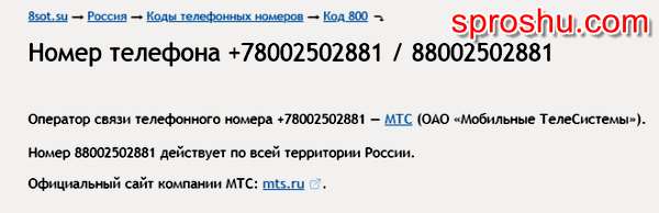 Чей номер 78002502881? Кому принадлежит номер телефона 88002502881?