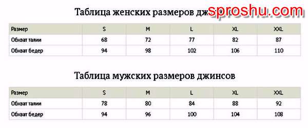 Как определить размер джинс, зная размер своих брюк?