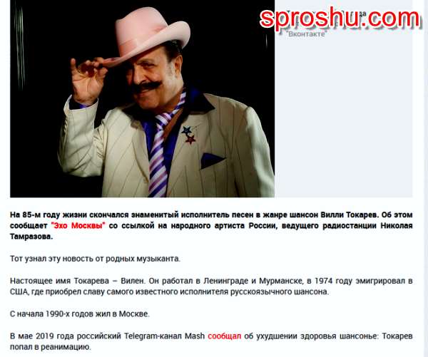 Вилли Токарев умер....