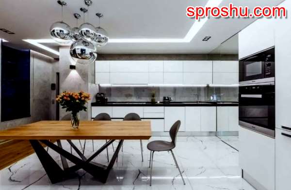 Лучше всего его использовать на кухне. Это строгий и холодный стиль, свойственный офисным помещениям. Но для кухни он подойдет. Во-первых, большей частью применяемая на кухне мебель очень минималистична. В таком виде ее легче отмыть. Во-вторых, на кухне всю эту строгость легко разбавить цветом. А так же на восприятие окажет свое влияние запах. А вот в спальне и гостинной данный стиль неуместен. Он не дает ощущение комфорта. Если бы вам предложили жить в офисном помещении, вы бы согласились? Не думаю. А на кухне, где происходит трудовая деятельность хозяйки, рабочая обстановка вполне нормальное явление.