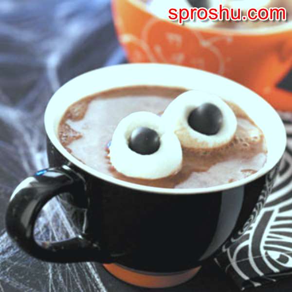 Можно приготовить какао или кофе с шоколадом с украшением в виде глаз.