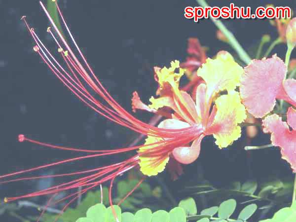 У нее несколько лестных "прозвищ": "райская красная птица", "цветок павлина", "куст попугая", "гордость Барбадосса".