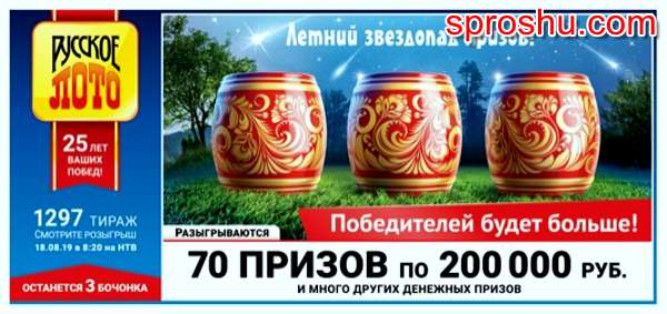 Русское лото, тираж 1297. Как выглядит билет? Что будет разыграно?