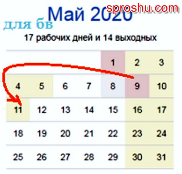 Так 10 мая - рабочий, но в 2020 году - выходной.
