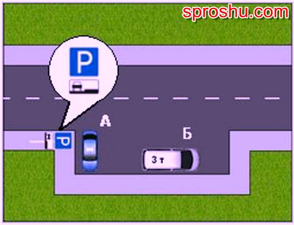 При наличии данного знака " парковка" в нашем случае с табличкой " способ постановки транспортного средства на стоянку" все автомобили ( грузовые, легковые) должны быть поставлены только параллельно краю проезжей части. Следовательно, водитель автомобиля А нарушил правила.