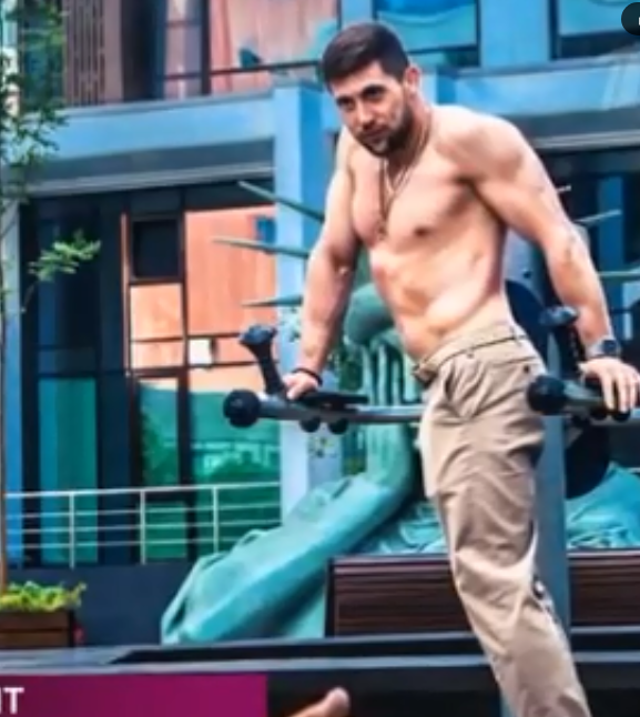 Александр в прекрасной физической форме, занимается в фитнес-зале.