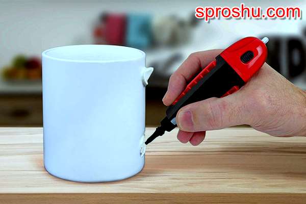 В нем находится полимерный гель, которым надо намазать те места, которые хочешь соединить, и посветить из этой же ручки ультрафиолетовым светом.