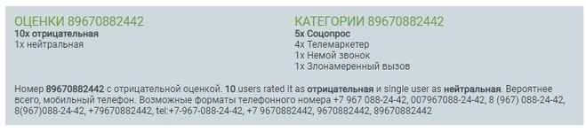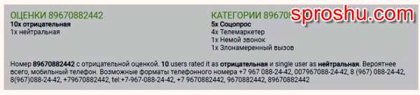 Кто звонил 89670882442? Информация о номере, отзывы какие?