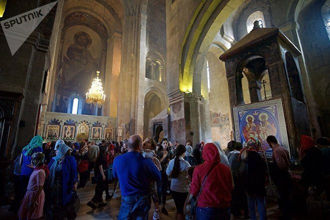 Различие - в аутентичной традиционной форме грузинских церквей, богослужение идет на грузинском языке.