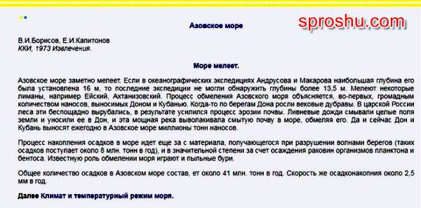 Дополнительные сведения, о том, что Азовское море якобы соединяется (или соединялась когда то) с атлантическим океаном по длинной цепочке проливов и морей, я не намерен описывать. Пусть это останется в компетенции географов и историков. Единственное, что могу добавить: по отдалённости от океана азовское море является самым континентальным морем планеты.