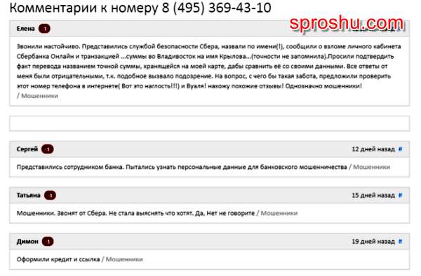 - Помните, что когда пытаются выяснить пароль, представляешь что они от службы безопасности Сберегательного банка, помните что не Какие пароли ни от каких карт, мы не говорим. Мы вам рекомендуем номер 8 495 369 43 10, занести в чёрный список своего мобильного телефона, Тем самым вы его заблокировал. Чем вы себе облегчите жизнь и избавитесь от ненужных и назойливых звонков. В случае если вы не успели взять трубку телефона, то ни в коем случае не перезванивайте по данному номеру, чтобы ваш баланс не был обновлён полностью.