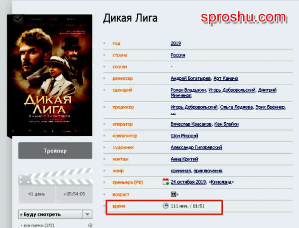 Дикая лига фильм 2019 года, сколько идёт по времени?