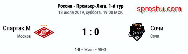 Футбол. 13.07.19. РПЛ. Спартак - Сочи, как сыграли, кто победил?