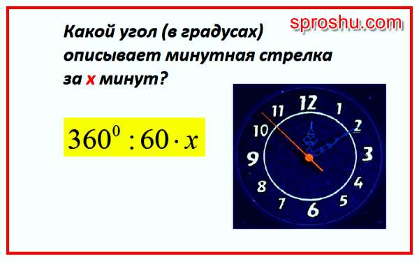 А за 8 минут минутная стрелка будет описывать угол в 8 раз больше, чем за одну минуту. Поэтому