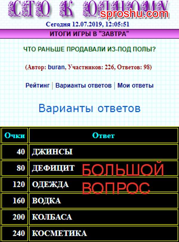 100 к 1. Что раньше продавали из-под полы? (интерактивная игра)?