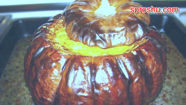 Тыква набивается начинкой ровно на две трети, доверху ее нельзя наполнять.