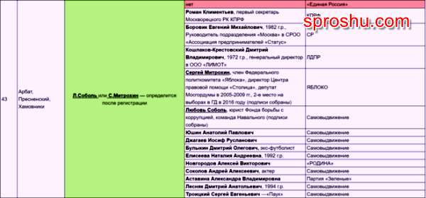 Кого зарегистрировали по 43-му изб. округу в Москве на выборах в Думу 2019?