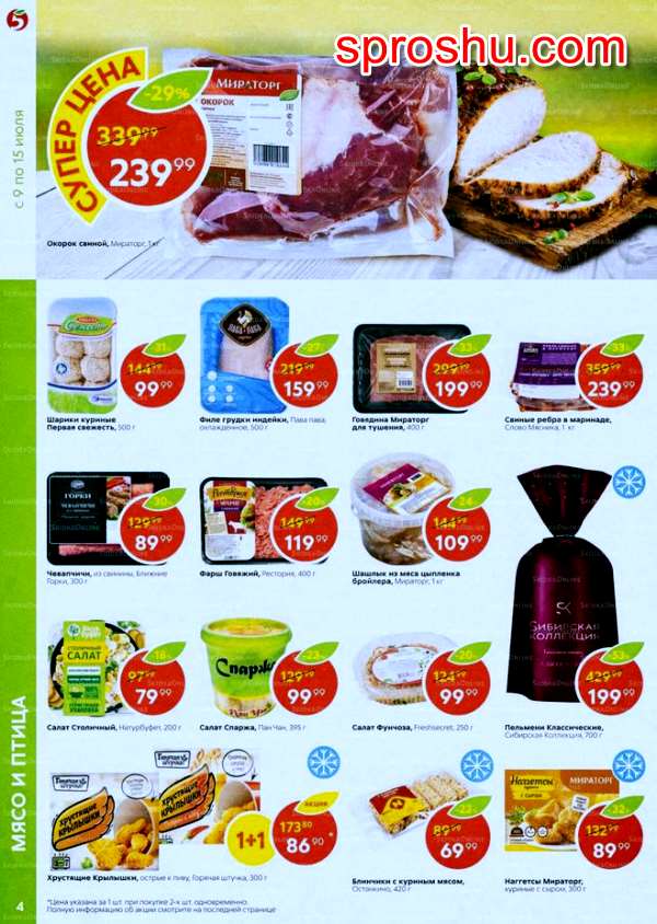 Окорок из свинины - 29 процентов экономия. Шарики из курицы - 31 процент экономия.