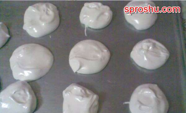 Противень смочим водой и выложим зефирную массу ложкой или при помощи кондитерского шприца.