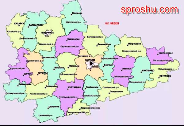 Определить грибные места в Курганской области можно, пользуясь картой области с районами, которая показано ниже.