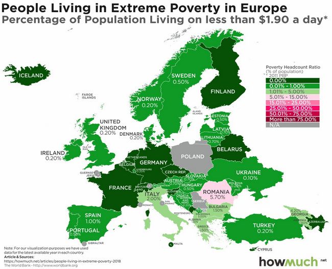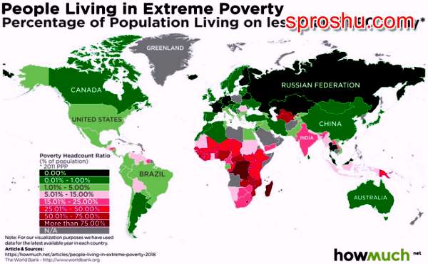 На этой странице можно посмотреть информацию на английском. И там же есть ссылка на полный отчет (много букафф, выкладок, диаграмм и прочего). А сайт howmuch.net взял предоставленные данные, и на их основе создал всемирную карту экстремальной бедности — людей, живущих менее, чем на USD 1,9 в день.