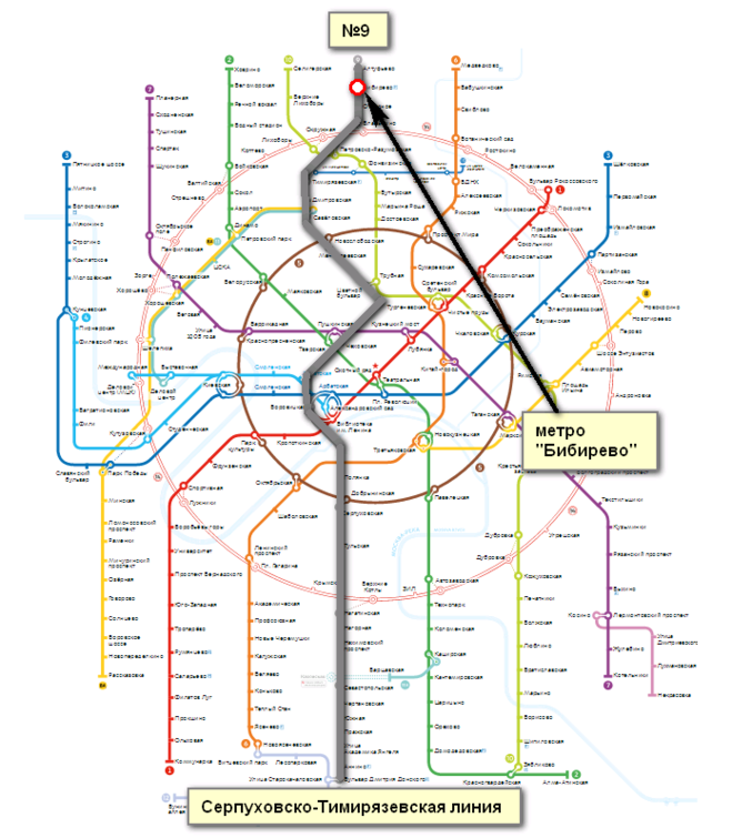 Точное расположение станции метро "Бибирево" можно посмотреть на прилагаемой схеме:
