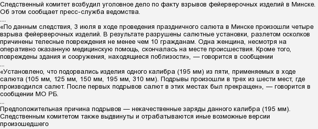Утром 4 июля власти официально сообщили о 4-х катастрофических взрывах на салютных установках в трех местах Минска во время празднования в Беларуси Дня Независимости вечером 3 июля.