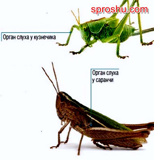 У сверчков "уши"расположены аж в трех местах и одно из них как раз под коленками передних ног. Там же они и у шмелей с осами.