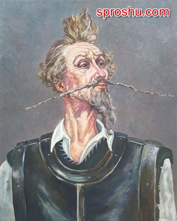 Если рассматривать его современные фото, то в первую очередь бросается в глаза прическа, выразительные черты лица, наклон головы. И это наводит на ассоциации о Дон Кихоте. Но вряд ли, полагаю, сходство более чем просто внешнее. Скорее всего, это совсем разные личности.