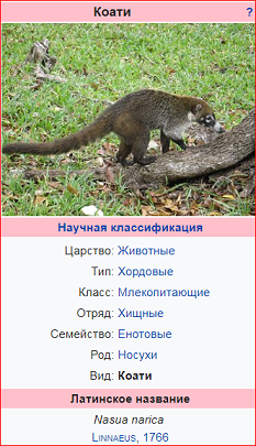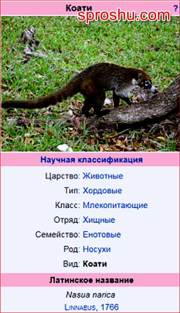 Вероятнее всего, речь идёт о млекопитающем семейства енотовых, которое относится к роду носух и называется - Коати (на местном индейском языке). Это животное распространено в Белизе, Колумбии, Коста-Рике, Гватемале, Гондурасе, Сальвадоре, Мексике, Никарагуа, Панаме и США.