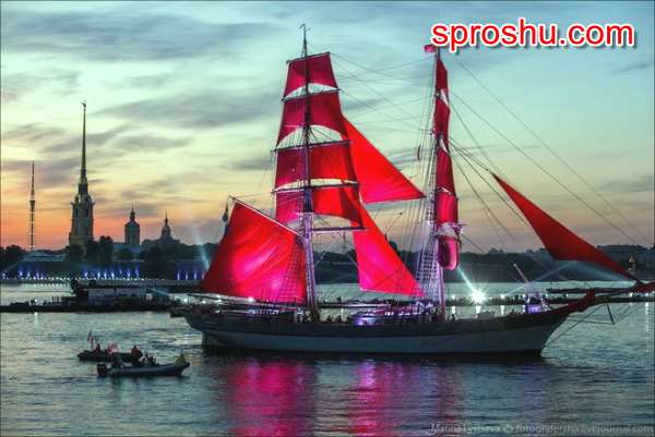 Бал Алые парусадля выпускников школ зародился в Ленинграде в 1968 году и с большим перерывом праздник с тем же названием -Алые паруса вновь возрожден в северной столице РФ Санкт- Петербурга, и выпускники школ гуляют всю ночь по набережной Невы. С 2005 года ,в четвертую субботу июня,проводят праздничные концерты с артистами эстрады, с наступлением темноты проходит залпы пиротехнической техники . И появление бригантины, символом вступление во взрослую жизнь, который подарил Александр Грин.