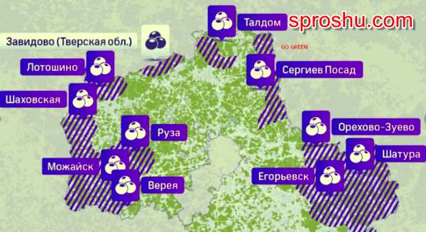 Ниже также представлена карта ягодных мест Московской области с указанием произрастания черники: