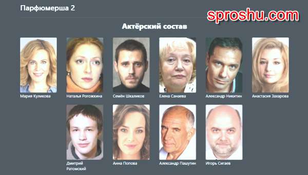 Таков основной актёрский состав сериала «Парфюмерша 2»