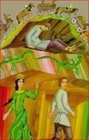 Когда Андрей почти умирает, он засыпая думает о Хозяйке медной горы и просыпается под тёплым солнышком на лугу, а возле бегают две зелёные ящерицы, которые показывают ему проход к Хозяйке.