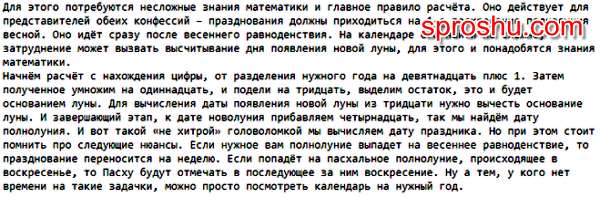 Дата Пасхи коррелирует с Католической Пасхой, обычно вторая на неделю раньше первой (в 45% случаев).