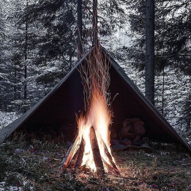Дедушка быстро натянул брезент, сделав что-то вроде палатки.Когда дождик закончился,то развели костер и стали жарить карасиков и запекать картошку.При этом все веселились и с удовольствием кушали, то что приготовили.
