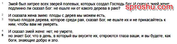 Змей(дьявол) - первый и самый хитрый из зверей. Именно он подсказал Еве что с дерева в раю можно есть плоды. Но она съела, и с тех пор земля проклята, и люди умирают.