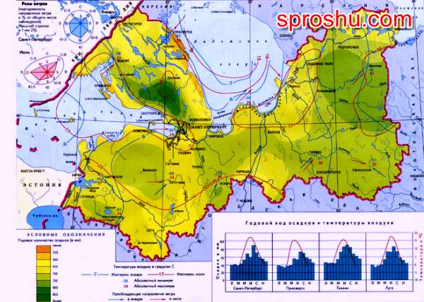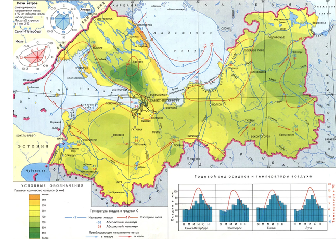 Учитывая такое положение, в Санкт-Петербурге и Ленинградской области достаточно теплые зимы, но лето по большей мере прохладное, так как атлантические циклоны препятствую проникновению теплых воздушных масс с южного направления.