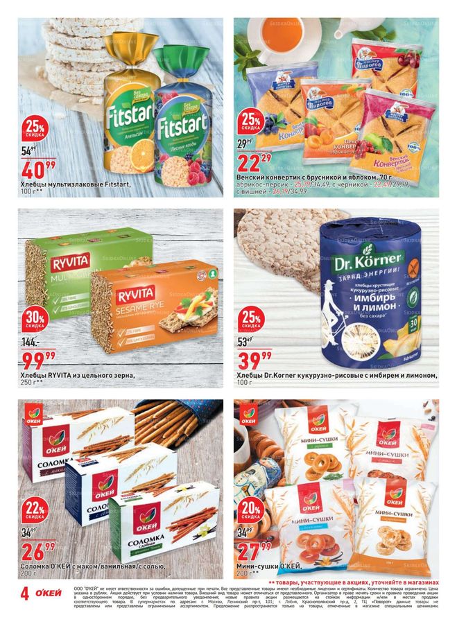 Хлебцы из цельного зерна "Рувита" - 30 процентов скидка. Мультизлаковые хлебцы "Фитстарт" - 25 процентов.