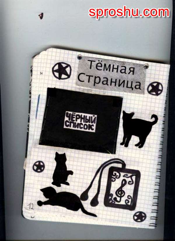Например, моя внучка двенадцати лет назвала себя в ЛД "Неангелнедемон", каждую страничку заполнила чёрной ручкой, нарисовала массу чёрных кошек, летучих мышей. Страницы оформила примерно таким образом.